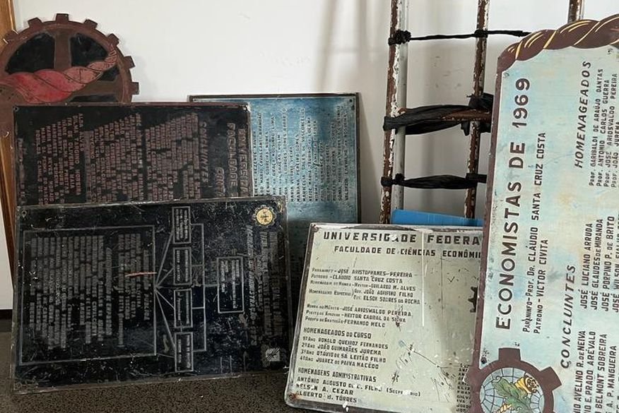 De acordo com a Polícia Federal, os suspeitos entraram no prédio abandonado da antiga Academia do Comércio, na Rua das Trincheiras, e resolveram retirar as placas.