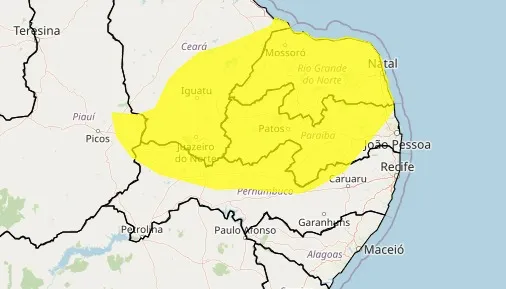 Na Paraíba, 203 municípios foram inseridos em alerta emitido pelo Instituto Nacional de Meteorologia por perigo potencial provocado por chuvas intensas até esta quarta-feira (14).