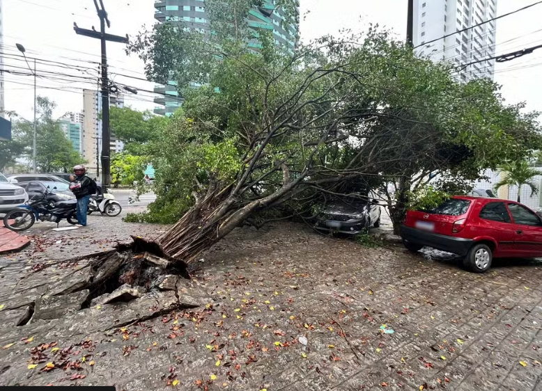 Na Avenida Camilo de Holanda, também na Torre, galhos de árvores mais finas caíram na via, assim como folhas, frutos e pequenos galhos se espalharam ao longo de toda a avenida, o que exige uma maior atenção dos motoristas na região.