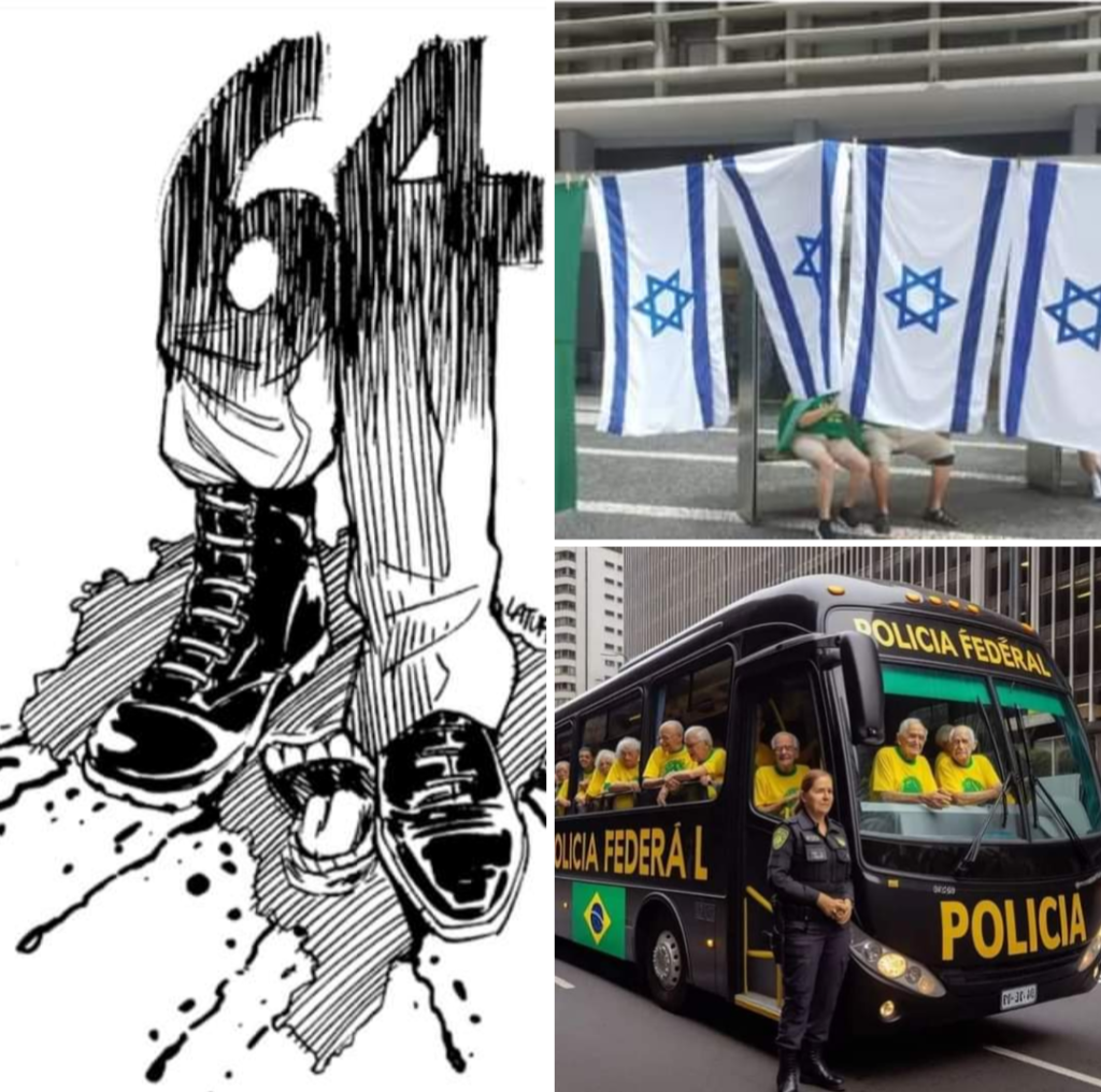 Enquanto todo o mundo se posiciona contrário ao genocídio de Israel na Faixa de Gaza, no Brasil, da extrema direita, usam a bandeira de Israel, pois estão sem poder usar as bandeiras clássicos como: “Intervenção Militar”, “TSE corrupto”, “Alexandre de Moraes Canalha”, “Ditadura Militar”.