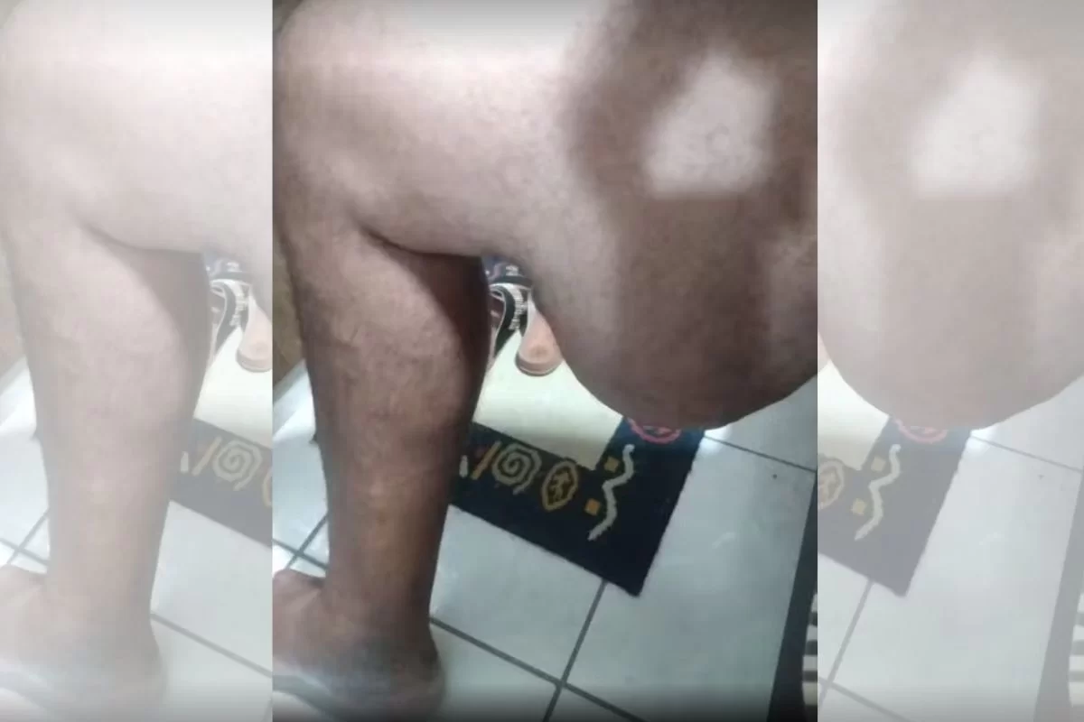 O autônomo Luciano Ferreira de Souza, 42, luta há anos para retirar um tumor benigno de sua perna. O lipoma, que começou do tamanho de uma uva, hoje já é considerado gigante — o paciente diz que o caroço tem o tamanho de uma manga.