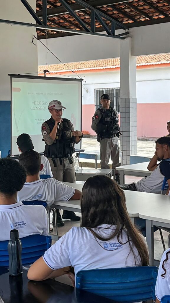 Na manhã desta quinta-feira (11), a Polícia Militar realizou uma palestra muito importante sobre o combate às drogas, ministrada pela Sgt Gilmara por meio do programa PROERD, na escola ECIT Eng. Márcia Guedes Alcoforado de Carvalho, em BELÉM-PB.