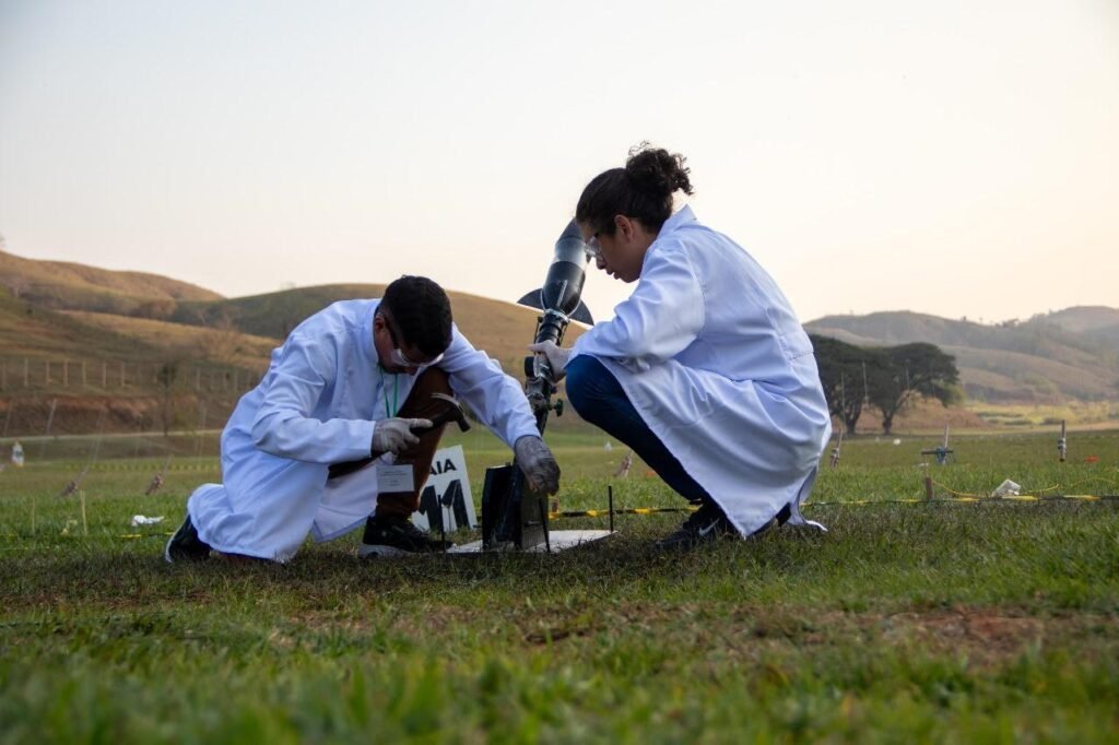 A Jornada de Foguetes, promovida desde 2009 pela Olimpíada Brasileira de Astronomia (MOBFOG), continua a ser um evento crucial para estimular o interesse dos jovens em ciência e tecnologia. A MOBFOG é dividida em 5 níveis, variando de acordo com a escolaridade dos participantes. Nos níveis 1 e 2, os alunos do 1º ao 5º ano lançam foguetes de canudo e papel, impulsionados por ar comprimido. No nível 3, estudantes do 6º ao 9º ano utilizam garrafas PET movidas por água e ar comprimido. No nível 4, os alunos do ensino médio usam foguetes movidos por vinagre e bicarbonato de sódio, enquanto no nível 5, alunos do ensino médio ou superior lançam foguetes com propulsão sólida. Com 13 jornadas programadas para 2024, a competição serve como uma plataforma para o desenvolvimento de habilidades científicas e técnicas entre estudantes de todo o Brasil.