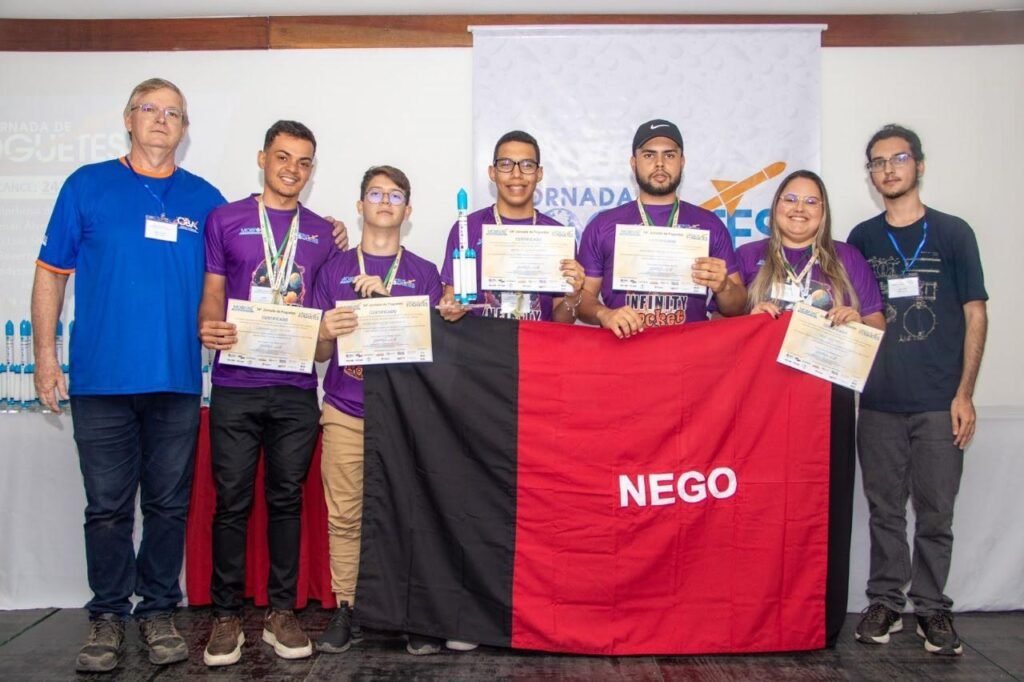 Franklin de Araújo também é estudante da 3ª série e completa a equipe que garantiu a medalha de prata. O jovem disse que a jornada não apenas proporcionou uma valiosa experiência, mas também o incentivou a prosseguir no ensino superior. “Foi uma experiência incrível e cheia de aprendizados. Participo do projeto do Professor Elbes desde 2023, que começou com foguetes de montagem e lançamentos mais básicos. Este ano, tivemos a oportunidade de nos inscrevermos na MOBFOG, e foi quando comecei a me dedicar ainda mais, me esforçando bastante. Essa jornada não foi apenas um evento na minha vida; estou muito grato por ver que todo o esforço valeu a pena”.