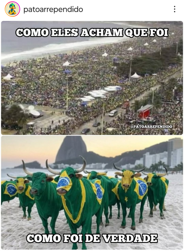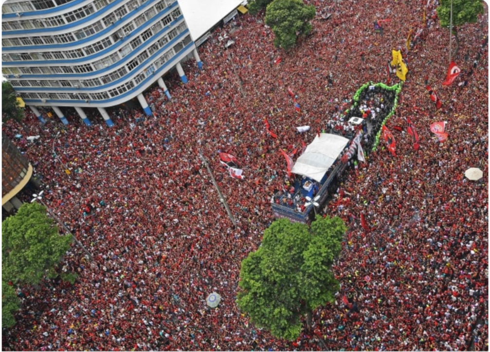 Mais uma vez a frase, em que “uma imagem fala por mil palavras” veio a tona. Para atualizar e completar, o final do Campeonato Carioca 2025, Fla x Flu no Maracanã, no mesmo dia da manifestação golpista (16/03/2025), com ingressos e roletas de registro, quase 70 mil torcedores foram ao Maracanã ver o Fla ser campeão. Essa é a capacidade de todo o Maca e sabemos que torcida do urubu é inflamada e  incendeia.