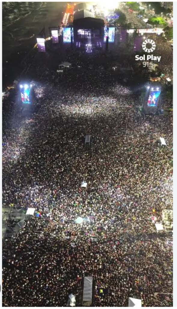 Relatório aponta que Madonna em seu último show em Copacabana (2024), no mesmo local, reuniu cerca de 1 milhão de pessoas que ocuparam todo o circuito de areia e mais de 20 quadras do calçadão. O bloquinho de Bolsonaro ocupou apenas um ponto da avenida, então, não dá nem para comparar.