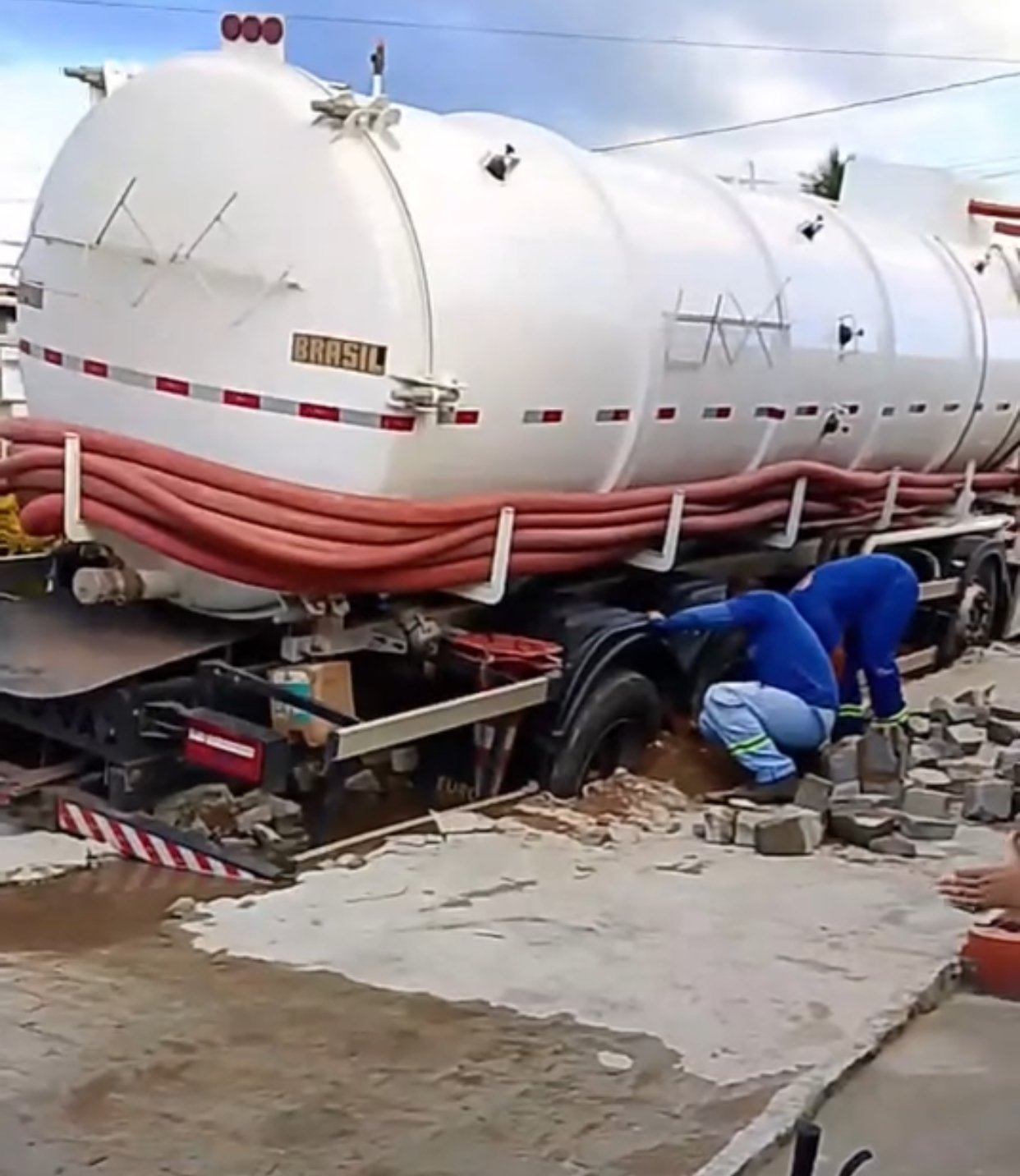 GUARABIRA: Calçamento recém inaugurado afunda com caminhão