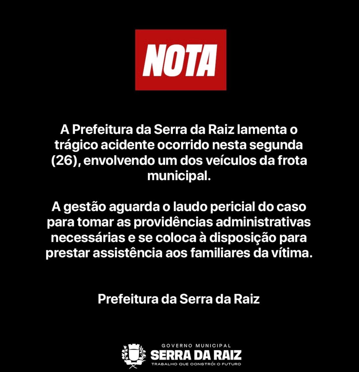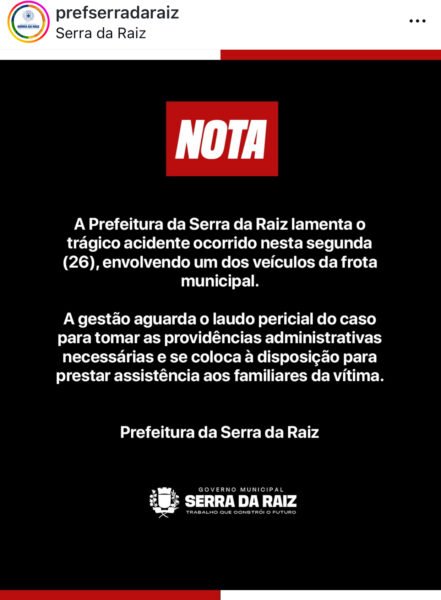 Uma mulher morreu na tarde desta segunda-feira vítima de atropelamento por um veículo pertencente à prefeitura do município de Serra da Raiz. O acidente foi na entrada de Pirpirituba, na PB-073.