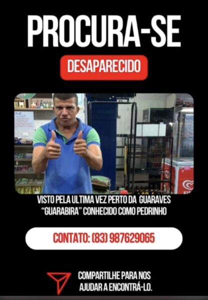 De acordo com as informações o homem é da cidade de Itapororoca e tem problemas de saúde mental ele foi visto pela última vez saindo de Itapororoca dizendo que ia passear em Guarabira.