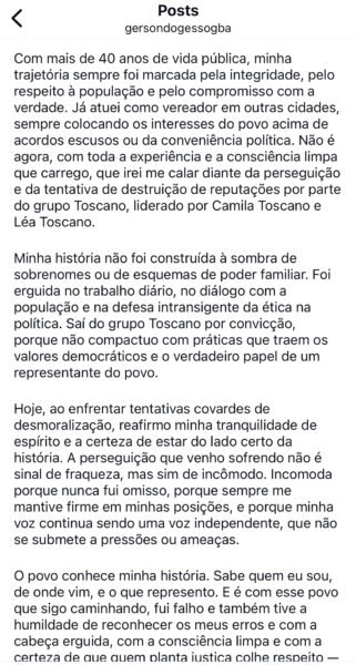 Ambos publicaram uma carta aberta à população nas redes sociais, e nelas expõe os motivos que os levaram a deixar o grupo Toscano.