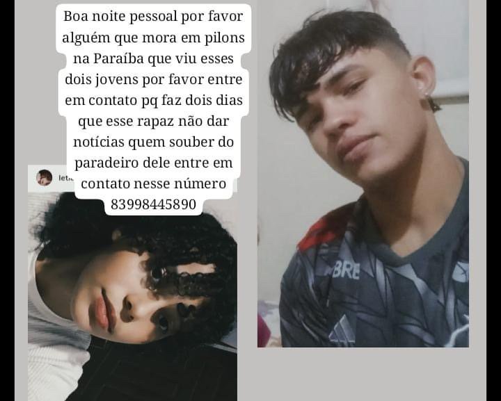 Uma família do município de Cacimba de Dentro, entrou em contato com a nossa redação para pedir que divulgamos a fotografia desse joven que está desaparecido. De acordo com a parente do rapaz da foto, Kennedy kelvi, ele veio do Rio de Janeiro há poucos dias para morar em Cacimba de Dentro e foi a Pilões conhecer essa moça. Desde então não voltou para casa nem mantam cor ato com a família que está desesperada.