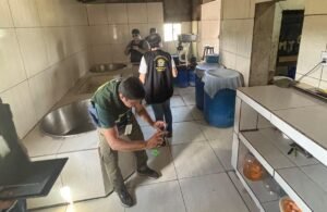 Entre as irregularidades encontradas estavam o uso de água sem tratamento, ambiente sujo e fora das normas sanitárias, equipamentos enferrujados, moscas dentro do leite que seria processado, além de galinhas e fezes no mesmo espaço onde os queijos eram manipulados e armazenados.