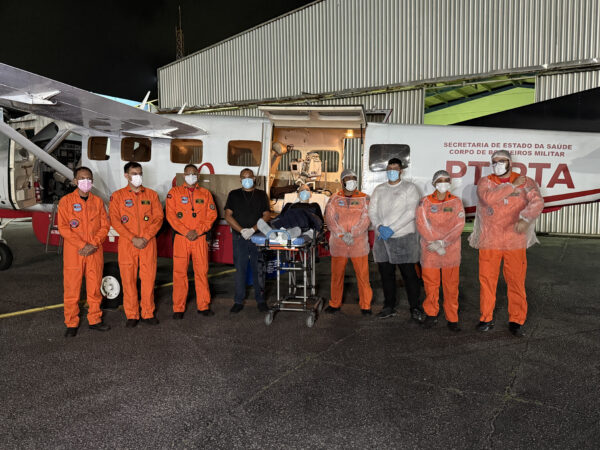 Para assegurar a estabilidade clínica do paciente durante o voo, a aeronave foi equipada com respiradores, monitores multiparâmetros, bombas de infusão, oxigênio e todo o suporte necessário para manter o acompanhamento contínuo do quadro de saúde. Além dos equipamentos, a missão exigiu a presença de uma equipe multiprofissional, composta por médico, enfermeiro, fisioterapeuta e operadores aerotáticos (OAT), preparada para agir de forma rápida e integrada diante de qualquer intercorrência. “Toda a operação foi cuidadosamente planejada para assegurar que o paciente recebesse, em todas as etapas, o mesmo padrão de cuidado hospitalar, mesmo em ambiente aéreo”, afirmou o médico de voo, Matheus Figueiredo.