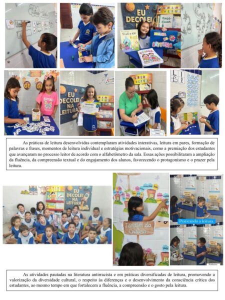 Pirpirituba foi destaque com o projeto “Cantinho da Leitura: práticas de leitura e escrita para o fortalecimento da alfabetização”, desenvolvido pela Escola Monsenhor José Coutinho, que conquistou o 1º lugar na Gerência Regional de Ensino e seguiu para representar a região na etapa estadual. A iniciativa promove o prazer pela leitura e o desenvolvimento das habilidades de escrita desde os primeiros anos escolares, fortalecendo o processo de alfabetização de forma lúdica e significativa.