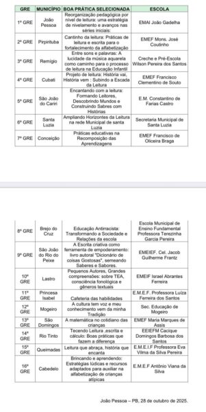 O evento, que tem como foco reconhecer e valorizar o trabalho dos profissionais da educação, apresentou experiências exitosas de diferentes redes de ensino, reforçando o compromisso coletivo com a melhoria da alfabetização e da qualidade da aprendizagem nas escolas paraibanas.