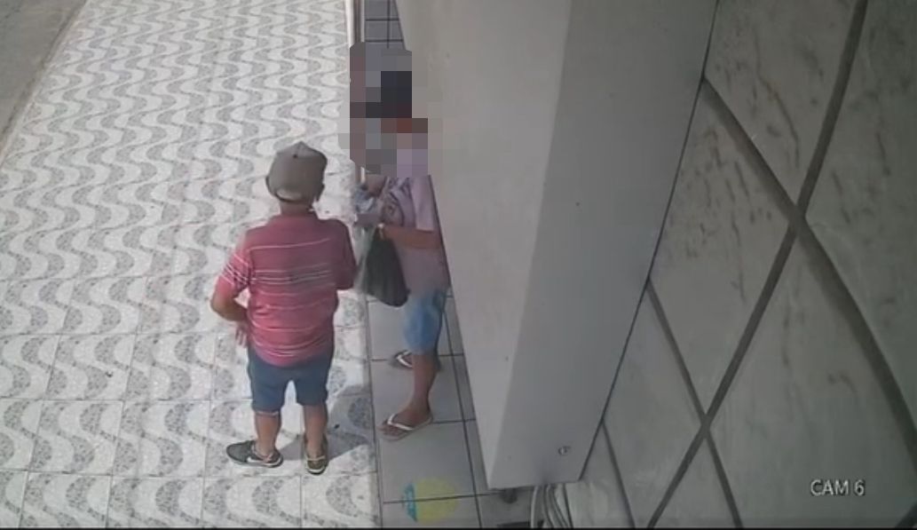 nas redes sociais mostrarem o momento em que a vítima esquece o pertence no balcão e um homem, que estava na fila logo atrás, toma posse do objeto.