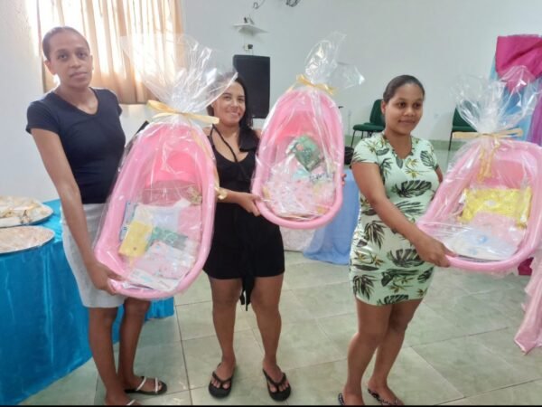 A ação que está inserida dentro da programação dos 72 anos da cidade, beneficiou 22 futuras mães, que receberam o kit enxoval completo, participaram de um momento de lanche coletivo e ouviram mensagens de incentivo ao parto, autocuidado e aos primeiros cuidados com o bebê.