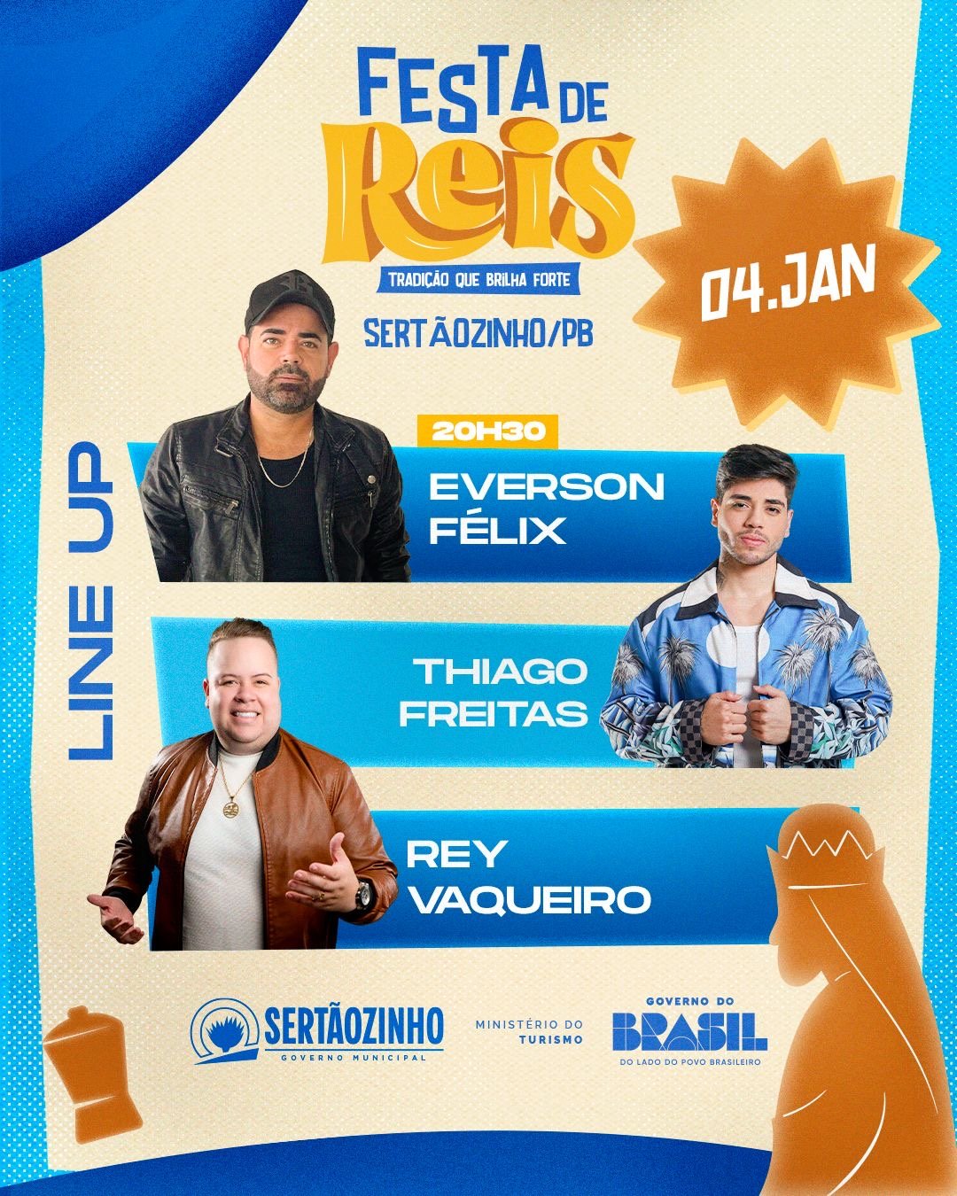 A tradicional Festa de Reis do município de Sertãozinho, no Agreste Paraibano, terá a sua segunda noite com a programação deste domingo (4), com as apresentações de grandes atrações. @reyvaqueiro é uma das atrações da noite!