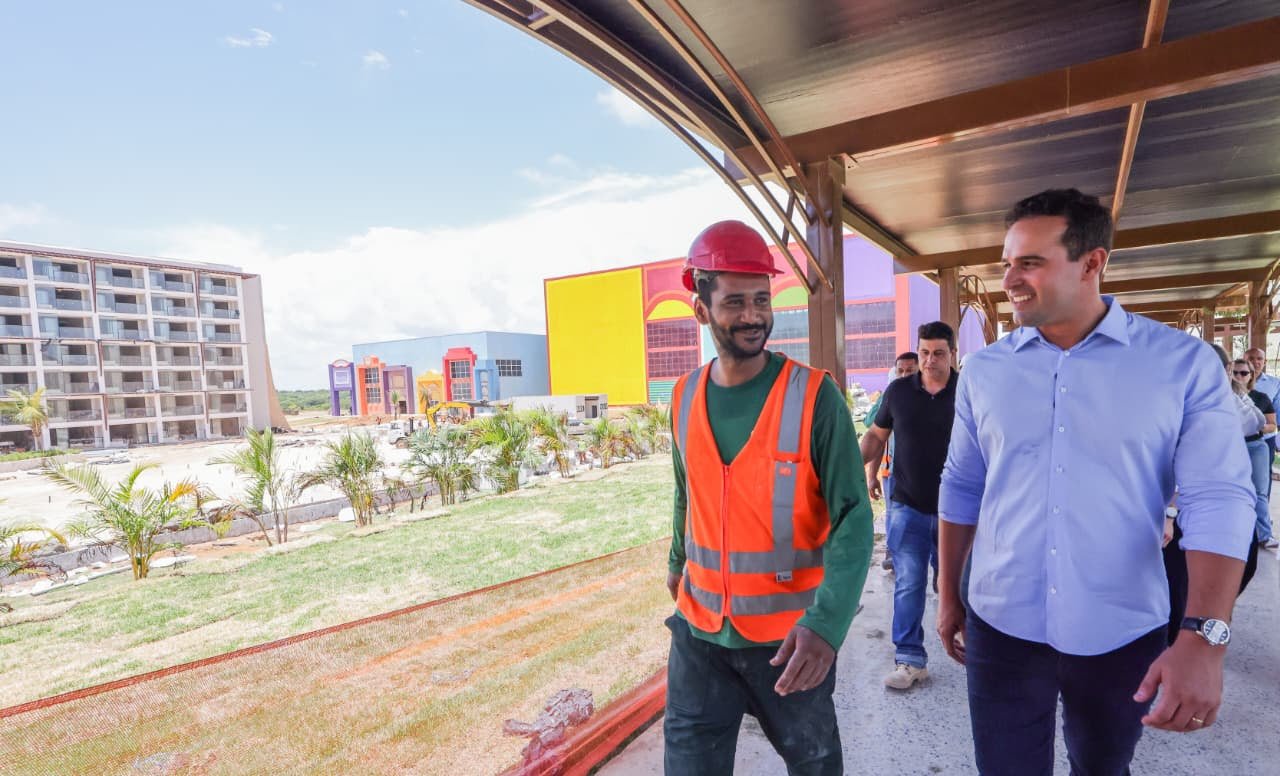 Acompanhado do engenheiro responsável pela obra, Ricardo Coutinho, de auxiliares e da imprensa, Lucas verificou o andamento da obra do Tauá, que chega a 92% da sua primeira etapa concluída. O grupo conheceu a área dos quartos montados, o restaurante, a área de lazer com piscina na cobertura, o centro de convenções com 3 mil m³, o salão de eventos, o teatro para 450 pessoas e a Cidade da Criança, tudo no mais alto padrão do mercado.