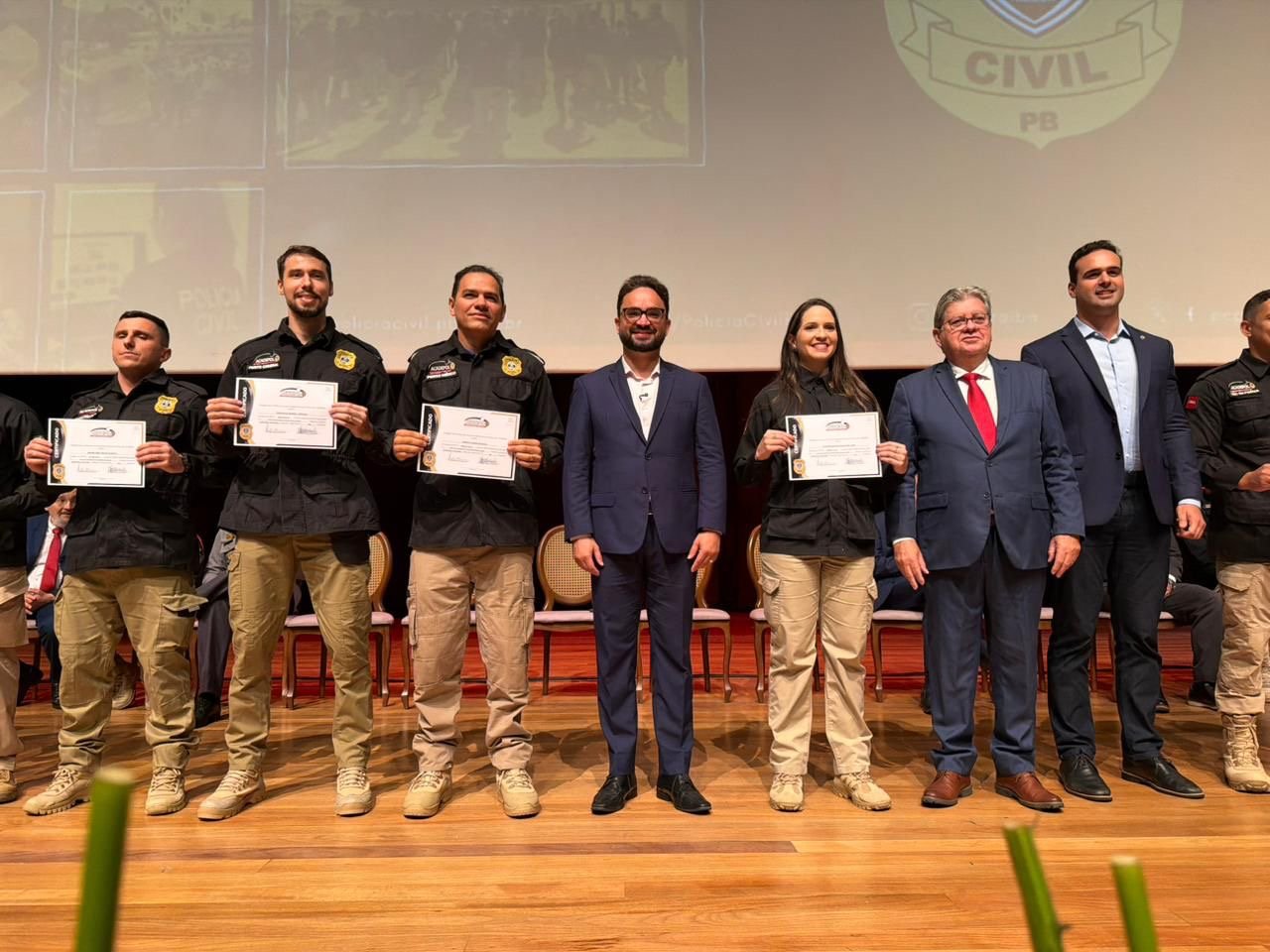 O evento contou com a presença do governador João Azevêdo e do vice-governador Lucas Ribeiro, reafirmando o compromisso da gestão estadual com o fortalecimento da segurança pública e a valorização do serviço público.