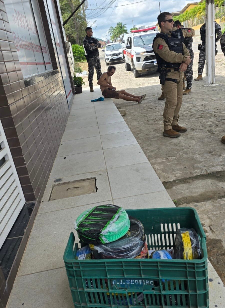 A Polícia Militar da Paraíba realizou, na tarde deste domingo (22), por volta do meio dia (12h) a prisão de um suspeito de furto em um estabelecimento comercial localizado no centro de Guarabira. A ação teve início após solicitação de apoio informando um possível crime em andamento nas proximidades de um comércio, em frente às barracas de fogos, na região da Madeguara.
