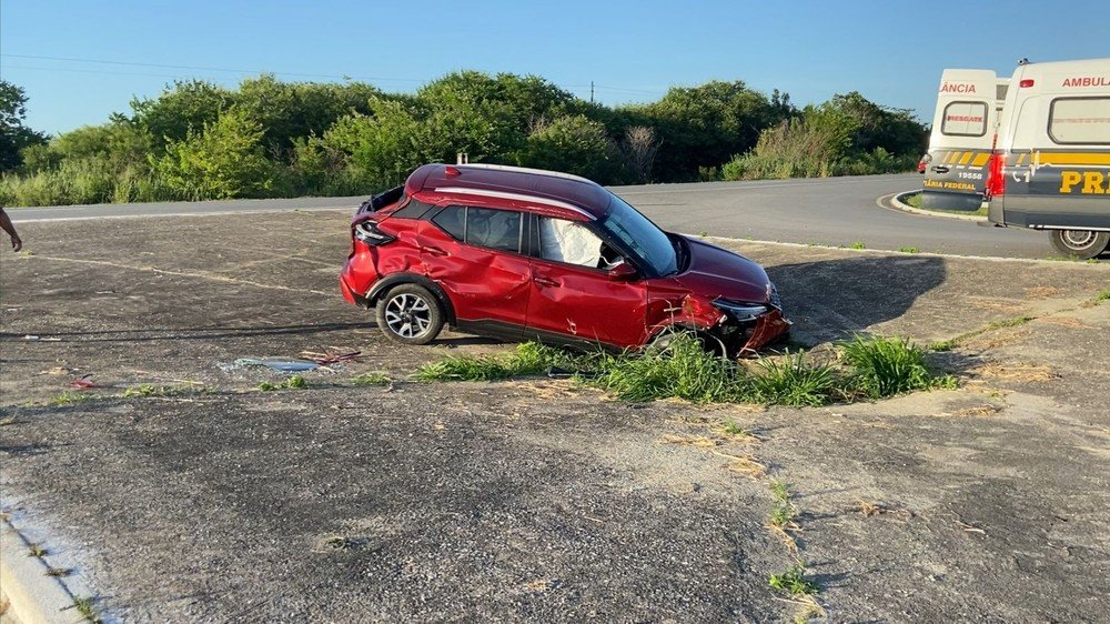 Uma mulher ficou ferida após o motorista do carro em que ela estava perder o controle do veículo e capotar próximo a um retorno no quilômetro 57 da BR-230, na cidade de Cruz do Espírito Santo, na tard...